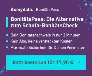 Unser Tipp: die meisten Vermieter verlangen eine Bonitäts-Auskunft. Lade dir in nur 2 Minuten deinen Bonitätsnachweis von itsmydata herunter.