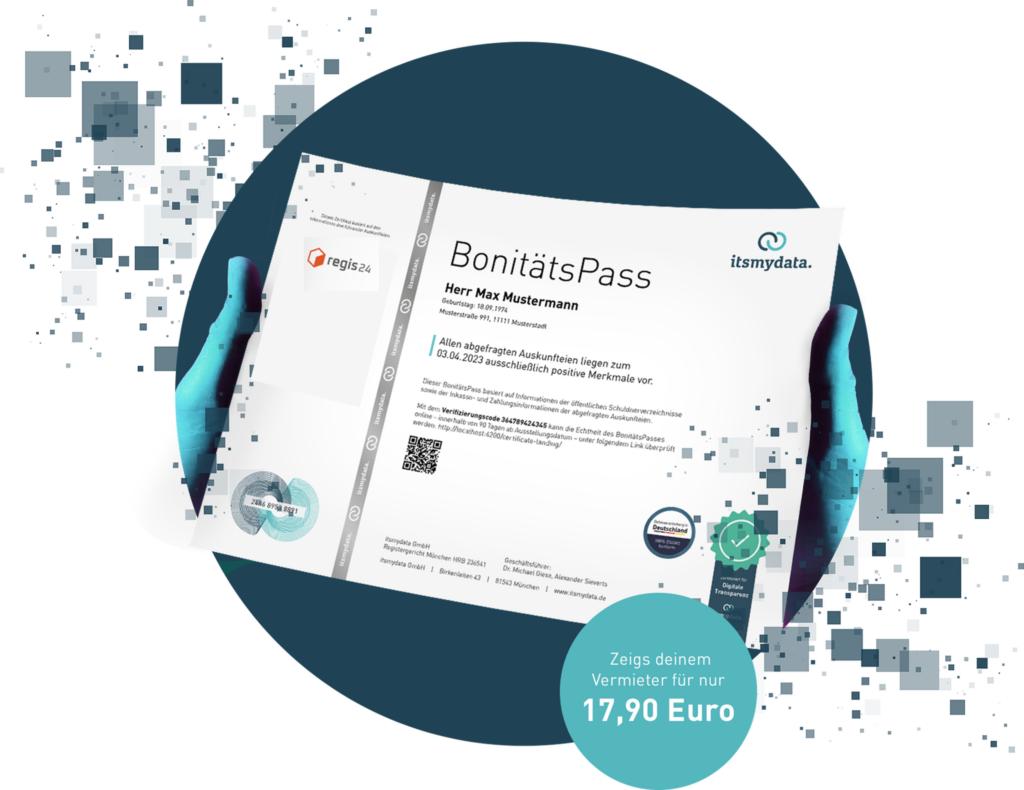 itsmydata bietet mit dem BonitätsPass eine moderne SCHUFA-Alternative, die nicht nur digital und günstiger ist, sondern auch transparent und datensouverän. Du bestimmst selbst, wer deine Auskunft einsehen darf und kannst die Informationen auf Wunsch mit deinen aktuellen Kontoauszügen (BonitätsPass+) ergänzen – für eine besonders aussagekräftige Darstellung deiner Zahlungsfähigkeit.
